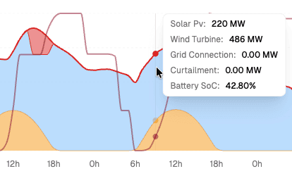 Simulate real-world operations for Power-to-X hubs and data center energy systems, with grid constraints, weather years, market prices, and degradation built in.